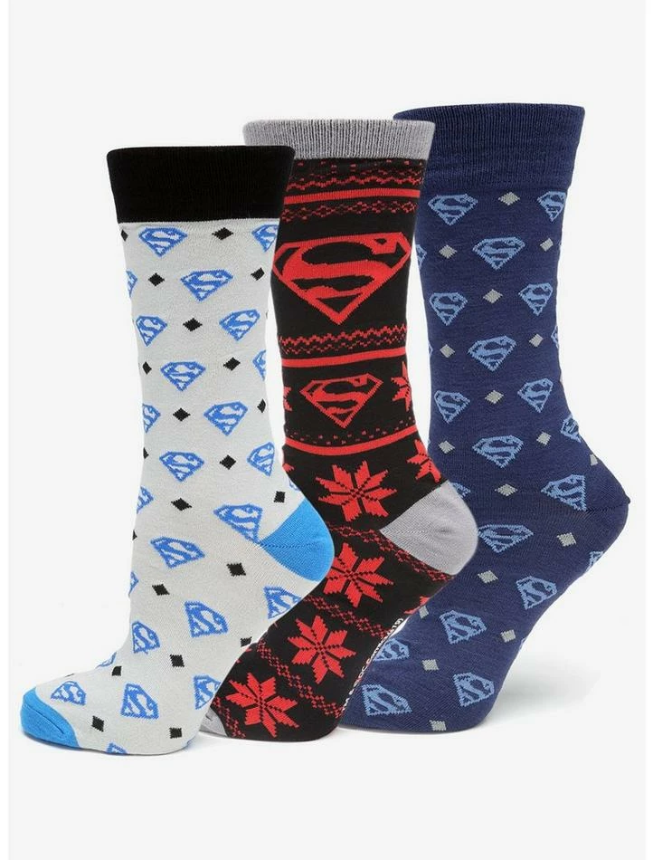 Elevate your sock game to the next level with this gift pack of Superman socks. Our cushiony-soft socks feature the iconic Man of Steel logo in three distinct patterns, including navy blue, black & red, and diamond gray. You’ll be the snazziest superhero fan in town. Officially licensed by DC Comics.