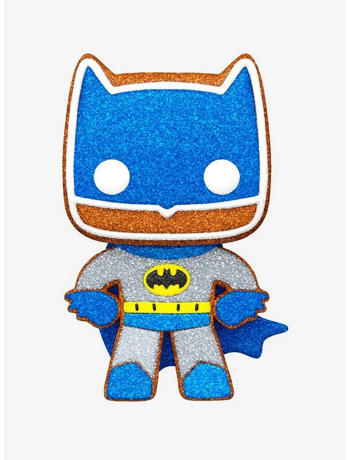 Stir up some holiday fun with this Diamond Collection Pop! Gingerbread Batman. This super hero is popping off the cookie tray in a powerfully delightful way. Smooth blue and yellow icing with a sparkly finish bring Batman to collectible confection perfection. Cook up a winning holiday team of crime fighters this season and grow your Pop! DC Heroes set today!